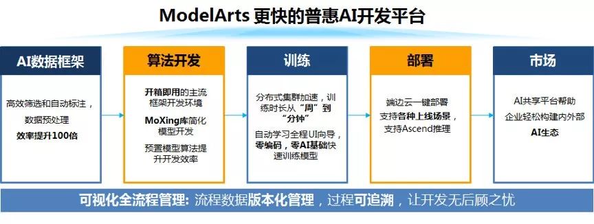后续,华为云ModelArts将进一步整合软硬一体化的优势,提供从芯片(Ascend)、服务器(Atlas Server)、计算通信库(CANN)到深度学习引擎(MindSpore)和分布式优化框架(MoXing)全栈优化的深度学习训练平台。