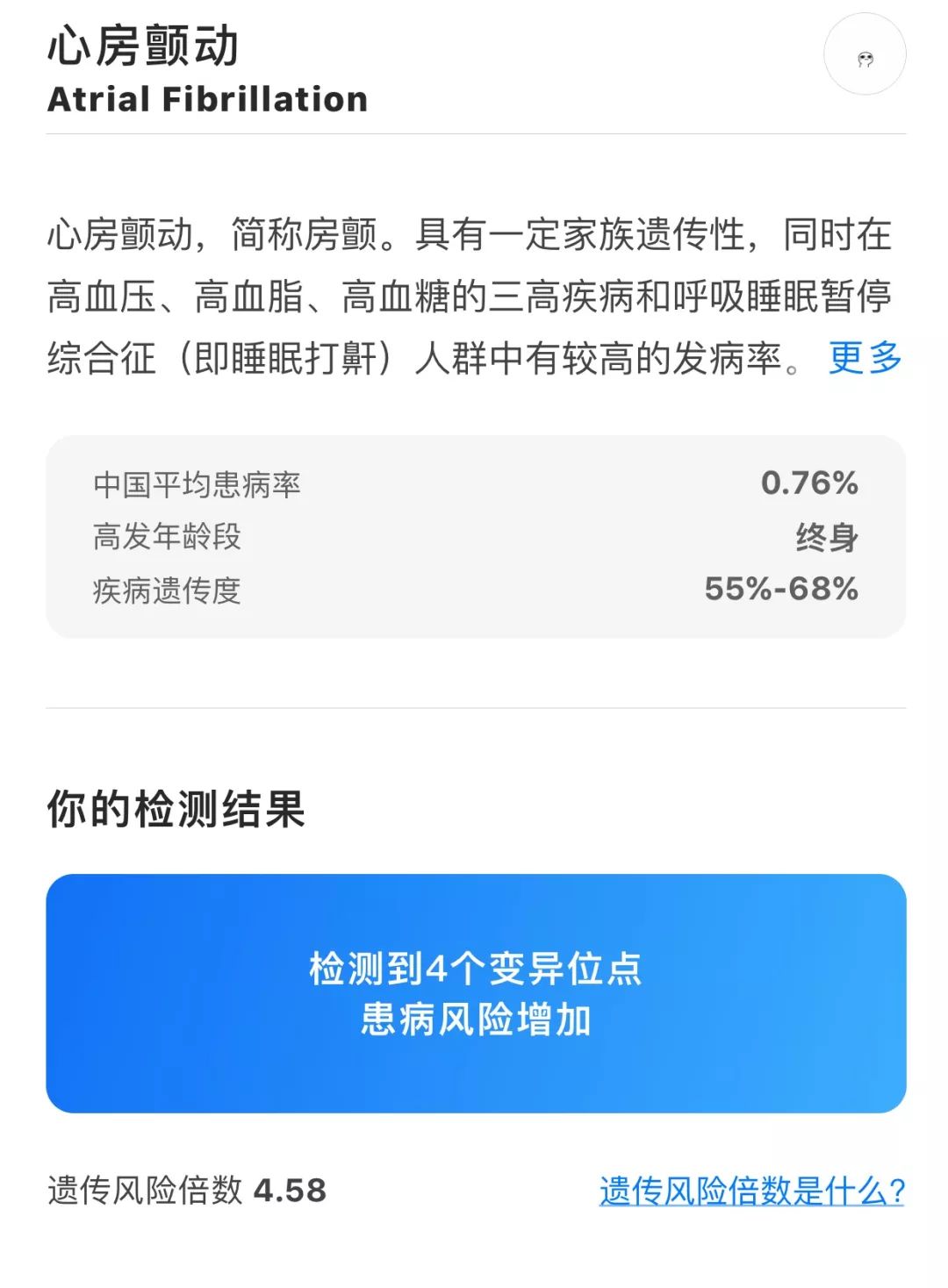 因为会有一个家族基因对比功能。能一举解决情侣间有哪些共同体征、以及后代更随妈妈还是更随爸爸的问题。比如这个什么病,孩子的风险明显随爸爸。