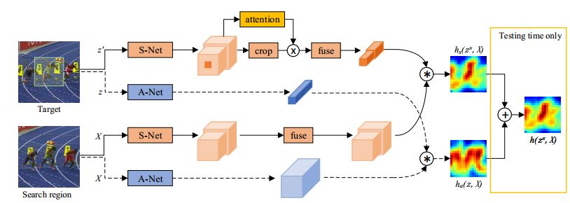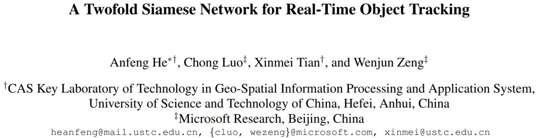 推荐理由: 2018年ECCV中MSRA的一篇工作。自SiamFC在2016年出来之后,一直到2018年前没有很亮眼的改进。SA-SIAM是继SiamRPN后一篇很有意思的改进。SA-SIAM的思想很简单(就像所有的siamese工作那样),利用双流网络去学习输入图像不同的特征,然后将不同的特征cross-correlation之后的相应图进行fusion得到最后结果。为了保持两支网络的差异化,分别将其在Imagenet和tracking的数据集上进行训练。SA-SIAM的后续改进在VOT-2018 real-time challenge取得了第三名。