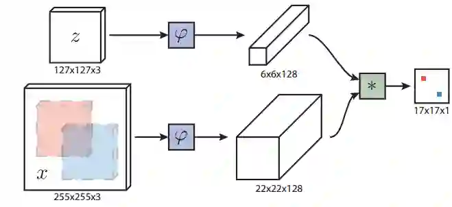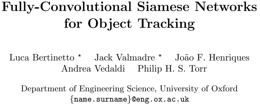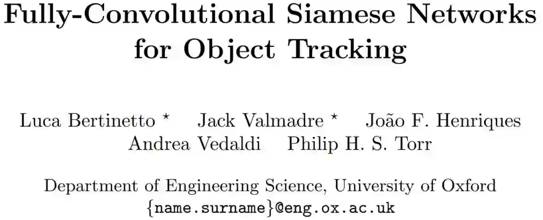 推荐理由: 在某种意义上SiamFC是SOT里继KCF后的又一个里程碑,发表在ECCVW2016。Siamese tracking的开山之作SINT将目标跟踪定义为一个匹配问题。将所有的proposal对应的特征提取之后与目标特征一一比对,得到最相似的即为最终目标。但是这种方法速度很慢。为了提高速度,SiamFC将特征提取比对的过程抽象成一个卷积层,以模板对应的特征作为卷积核在搜索区域对应的特征上进行滑窗卷积,多快好省的完成了匹配过程。近期流行的Siamese目标跟踪方法本质上都是在其上面做的改进。