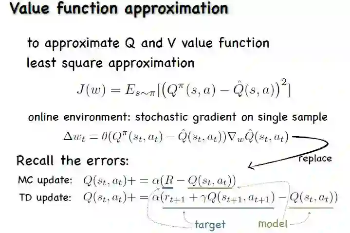 当遇到连续空间的问题时,用近似来表示值函数V和Q,这个做法看起来很自然,但是近似以后会发现,以往很多的理论结果就不成立了。