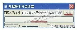 明白原理后操作就简单了,有一个叫做“数据库木马合并器”的工具,它可以使免杀操作更加简便,而且可以省去新建数据库的烦恼。“数据库木马合并器”的使用方法很简单,只要选择好木马程序,然后单击“合并”按钮然后选择保存路径就可以了,如图5所示。
