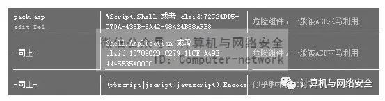 若脚本想要完成一些涉及其他文件或系统的工作,就一定要调用相应的组件。例如上面的例子代码中的Set FSOFIL=Server.CreateObject("Scripting.FileSystemObject")就是调用系统FSO组件的代码,中间括号里的Scripting.FileSystemObject便是FSO组件的特征,所以专杀工具只要扫描哪些文件里有这些代码就可以判定它调用了什么组件了。
