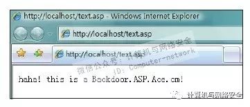 可能有朋友要问了,必须是GIF格式的图片才可以吗?当然不是了,只要是图片就可以。这个特殊的图片制作好之后,在别的ASP页面上使用<!——include file="xxx/xxx/2.gif"——>这行代码来调用这个特殊的图片就可以了,其中的xxx/xxx/2.gif指的是这个特殊图片在服务器上的位置。但是还有一点需要大家注意,当某些专杀程序扫描到包含此调用代码的文件时,就会提示管理员这个脚本调用了我们的那个图片,如果管理员对那个文件比较熟悉,就会察觉出存在问题。