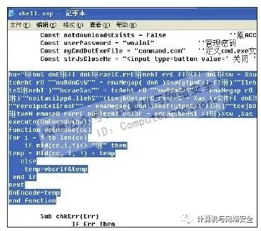 但如何将其应用到真正的脚本木马中呢?其实只要在实际应用过程中稍加注意就可以了,首先需要注意的是execute函数不支持HTML语言,也就是说纯粹的HTML语言是不可以使用这种方法加密的。其次就是如果需要加密的木马很大的话,里面肯定会包含许多双引号或单引号,程序有可能对其判断失误,因此在使用此办法加密前先使用其他的办法处理一下也未尝不是明智之举。除此之外,replace函数也可以实现类似的功能,而且原理更简单,执行效率也更高。