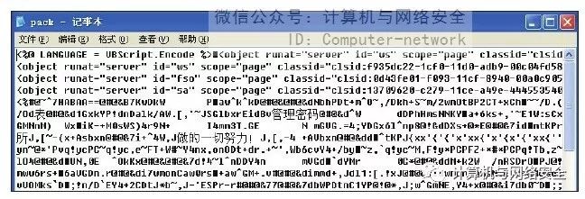 加密完成后,我们再来看看加密后的木马变成什么样子了,如图2所示。我想这没人能看得懂,既然连人都看不懂,那么杀毒软件自然也看不懂了。但是有一点需要大家注意,我们加密完成后需要测试一下脚本木马的功能是否完全正常,因为加密后的脚本木马有可能导致变量、参数等不能完全还原。