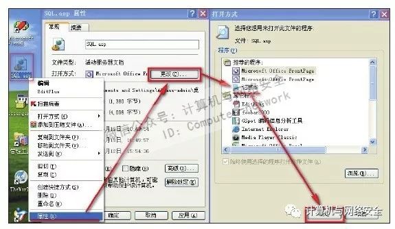 我们返回到特征码的问题上来,由于脚本木马里出现的所有字符都在文本文件里,所以第一步要做的就是更改版权,将木马“个人化”,从而达到一定的免杀效果。由于我们使用的ASP脚本木马大多数都是中文版的,因此不懂脚本的朋友可以暂时不用考虑语法与程序逻辑问题,见到中文尽管改就可以。但是怎么改呢?其实很简单,在脚本文件上单击右键,在弹出的菜单里选择“属性”,然后在对话框的“常规”选项里单击“更改”按钮,在弹出的新窗口中选择“记事本”,最后单击“确定”即可,如图3所示。