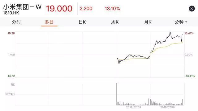 36氪讯,截至昨日港股收盘,小米报收于19港元,较开盘价17港元上涨13.1%,市值达4251亿港元。
