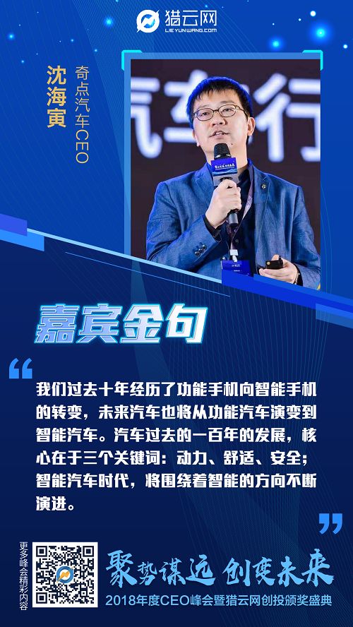 在本次峰会中,奇点汽车CEO沈海寅发表《2018年中国汽车奇点年的新思考》。