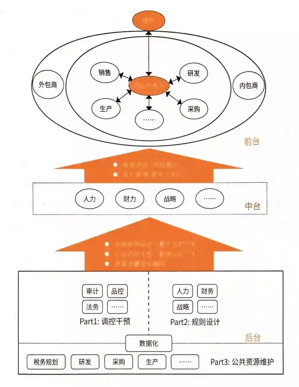 它为前台组织和团队提供类似于投资评估(项目甄别)、投资管理、投后管理(孵化与风控)。真正从组织和制度上支撑前台组织和应用的快速迭代规模化创新。