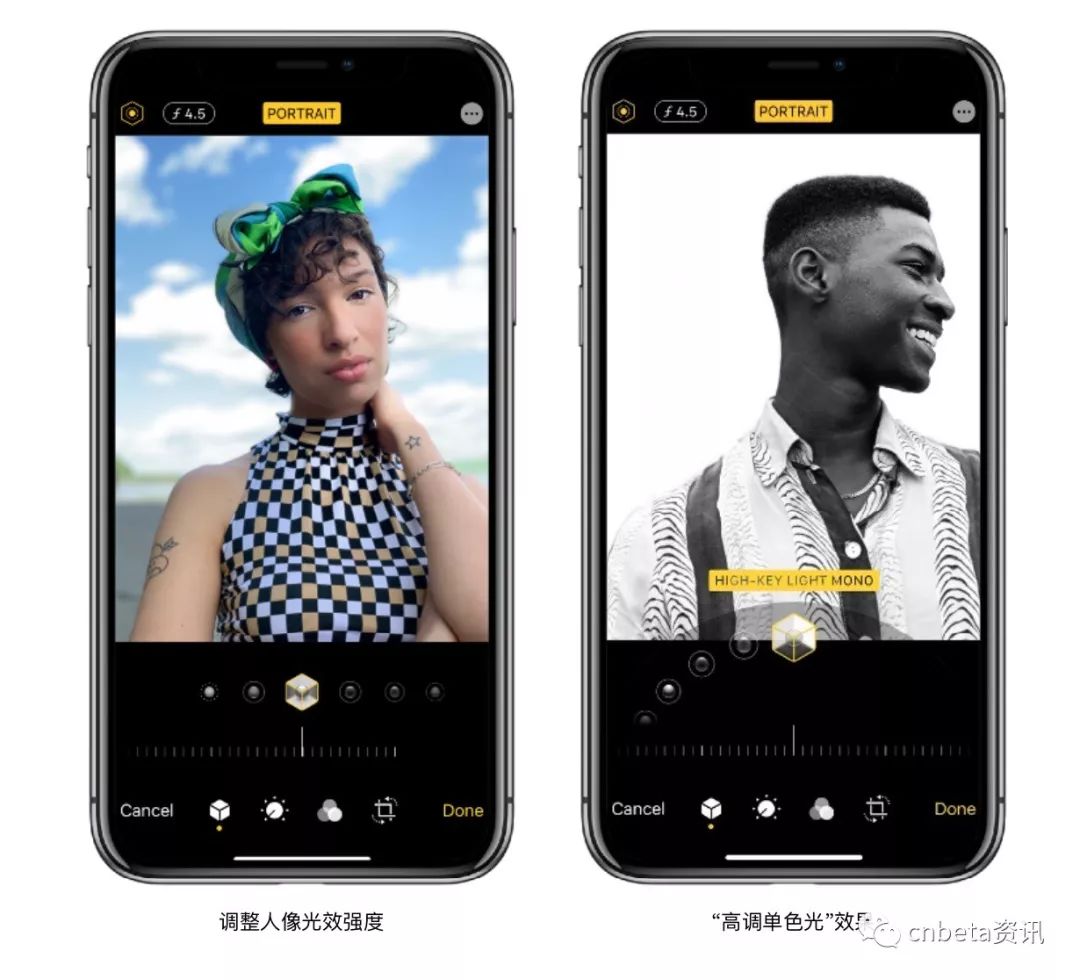在 iOS 13 相机中,苹果为人像模式添加了光效强度控制和单色效果,让拍出来的照片更加精美。