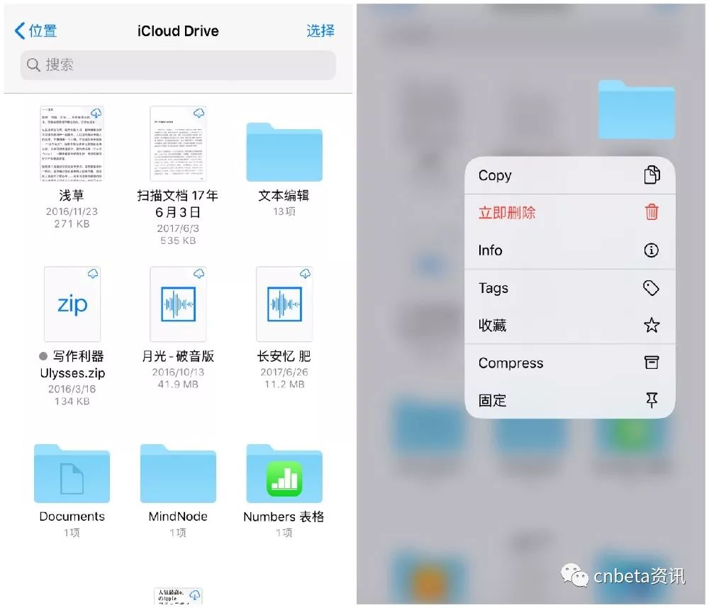 iOS 13 文件系统的可访问性得到了飞跃式提升,它能访问 U 盘、SD 卡或硬盘中的文件,能通过 SMB 连接办公室的文件服务器或家里的 PC,能在本地硬盘创建文件夹并添加你常用的文件,还能看到保存在这里的你下载的各类文件,并且对它们进行压缩与解压缩。