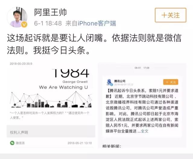 独立的头条和腾讯打仗,最后把阿里的微博打垮了。