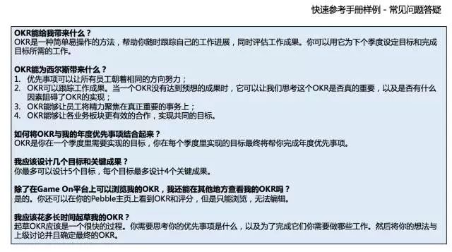 ▲常见问题答疑(图片中信息来源:西尔斯公司OKR快速参考指南)