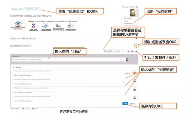 ▲西尔斯操作平台OKR录入界面(图片来源:https://www.youtube.com/watch?v=HZLrfLRugXs)