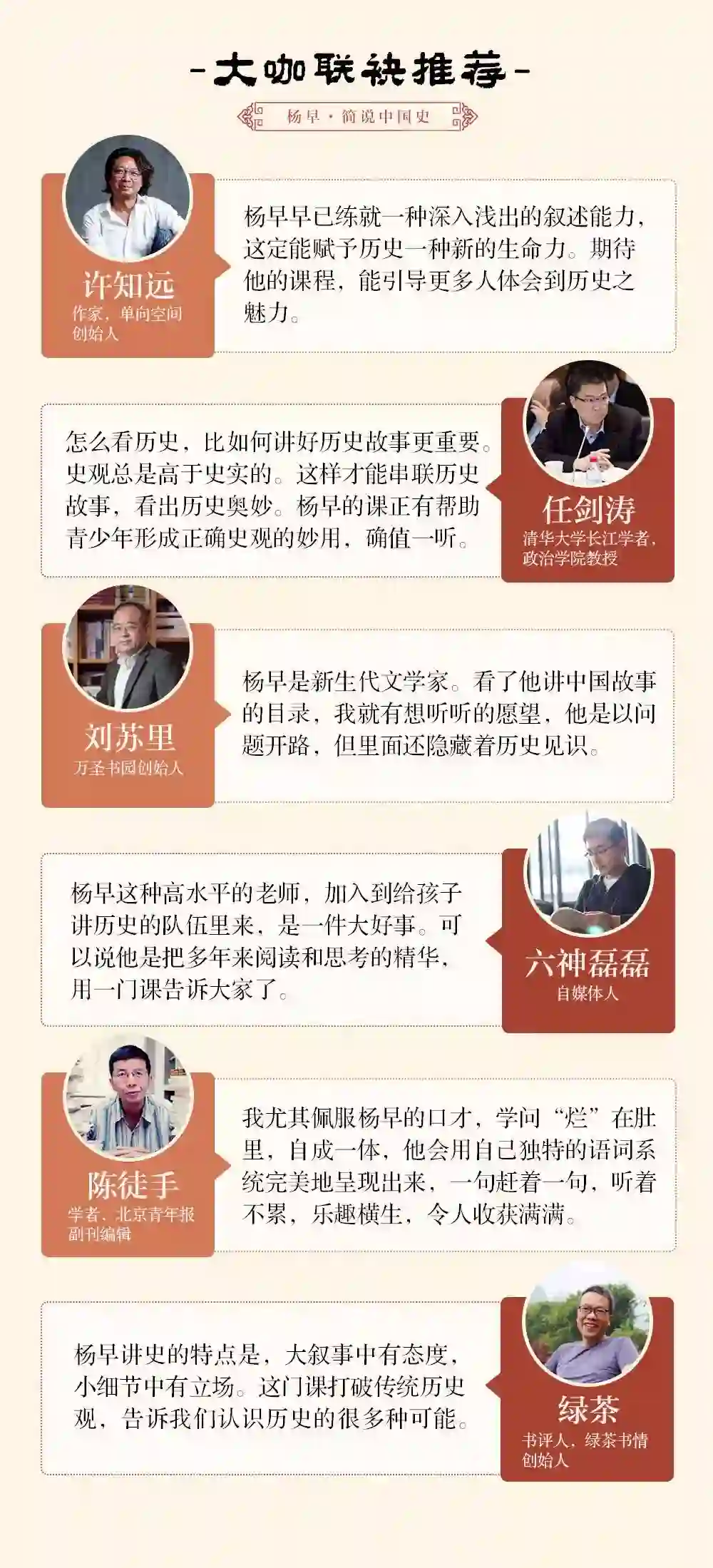 但中国通史都是些大部头,为了让孩子不被过高的门槛挡在了解历史的门外,中读这次特别邀请到了文史学者杨早,联合打造了给孩子们的历史课程《杨早·简说中国史——帮孩子建立历史观的第一课》。