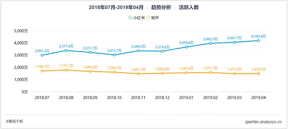 在用户规模方面,2019年4月易观千帆数据,知乎活跃用户不足1500万,小红书活跃用户超过4000万。活跃用户保持持续增长的小红书,有改革的底气,进入巨大的用户量阶段商业化势在必行;长期处于月活增长停滞甚至下滑的知乎,平台大V接连出走,知乎被迫采取了保守的“不作为”策略。