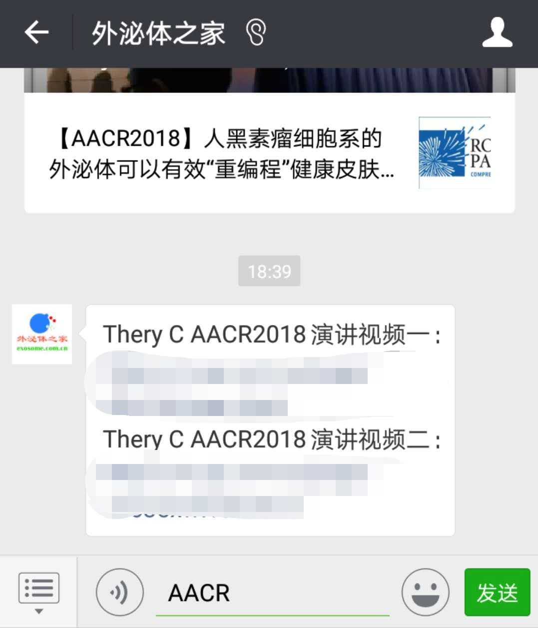 【彩蛋一】为大家附上Thery大神的现场报告视频,获取方式:关注外泌体之家公众号,会话页回复AACR即可。