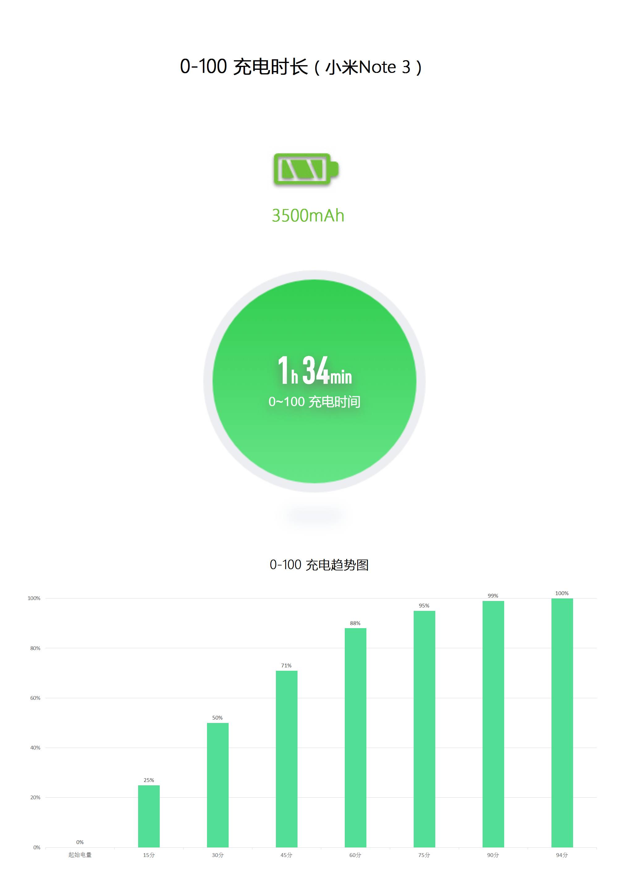 我们通过四个维度来综合衡量小米 Note 3 的续航以及发热控制表现,分别为「充电时长」、「待机表现」、「5 小时续航」、「发热控制」。