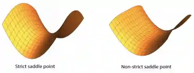 尽管非严格鞍点在谷底可以是平坦的,但是严格鞍点需要在至少一个方向上的曲率严格为负。这样的方向的存在则给基于梯度的算法逃离鞍点的可能性。一般来说,区分局部极小和非严格鞍点是NP-hard的;因此,我们,也包括之前这方面的学者们,都会把注意力放在逃离严格鞍点上。