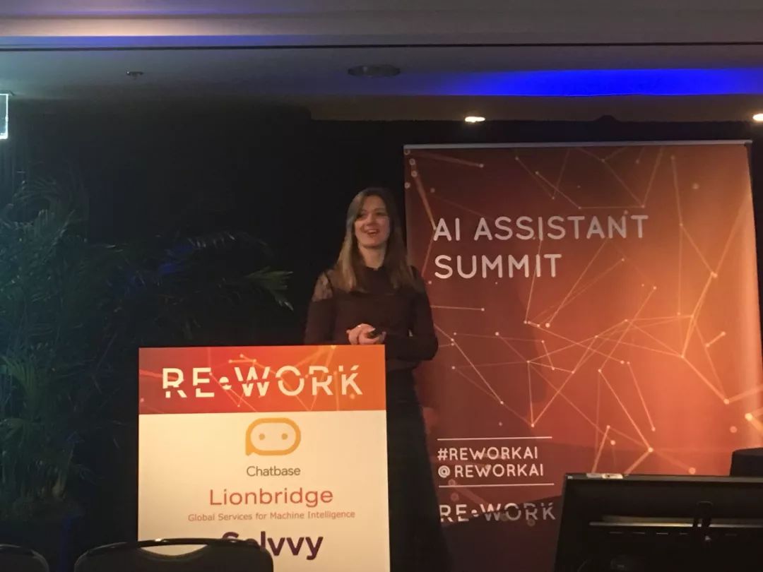 1 月 25 日,在旧金山举办的 Rework Deep Learning/AI Assistant (深度学习/人工智能助手)大会上,我见到了 Darcy,她受主办方邀请在会上介绍 Woebot。通常情况下,嘉宾只有 15 分钟的演讲时间和 5 分钟的问答时间,但示意提问的观众源源不断,导致问答时间被迫拉长到 15 分钟。Darcy 下台后,又有不少观众上前「围堵」,还有一些大学生现场寻求实习机会。