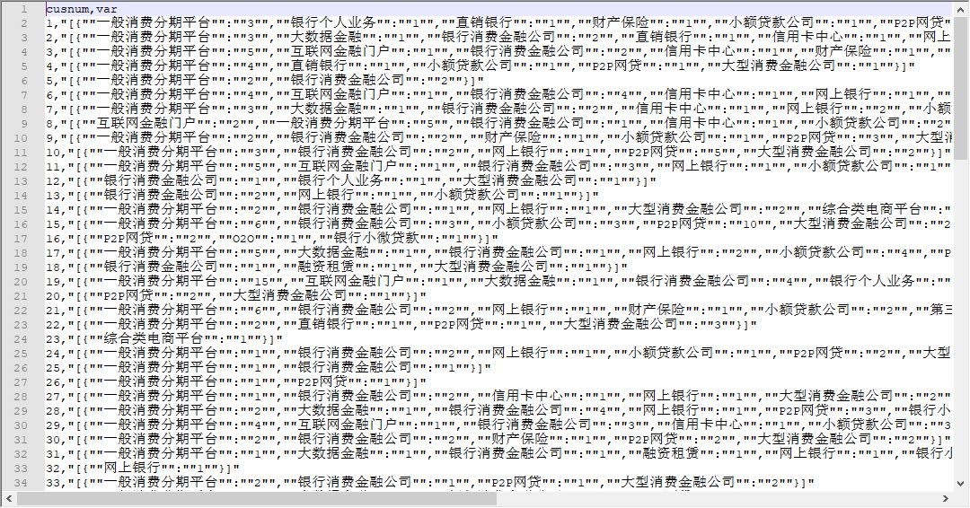 这是一个类json格式嵌套的数据,其中存在两个变量,第一个变量是cusnum作为序号,第二个是一个类json的嵌套变量,里面以类jsno格式嵌套了很多变量。