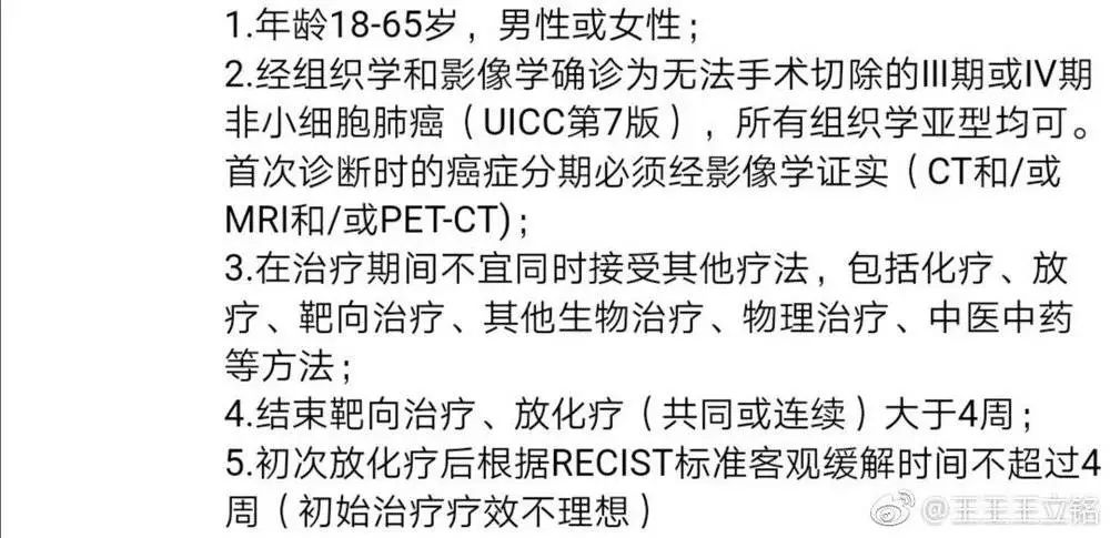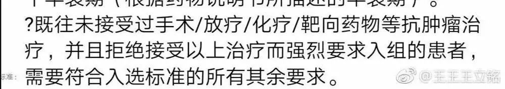 他们临床研究招募病人的条件,根本不是陈小平所说的其他任何方法无效,走投无路!甚至,在他们2017年开始的一个临床研究中,还有这么一条(信息来自中国临床试验注册中心的数据库):