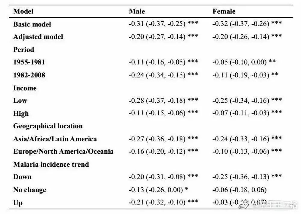 疟疾发病率和癌症死亡率即便真的存在微弱的负相关关系,也需要进一步考虑疟疾致癌、以及抗疟药治疗癌症的重要干扰因素;