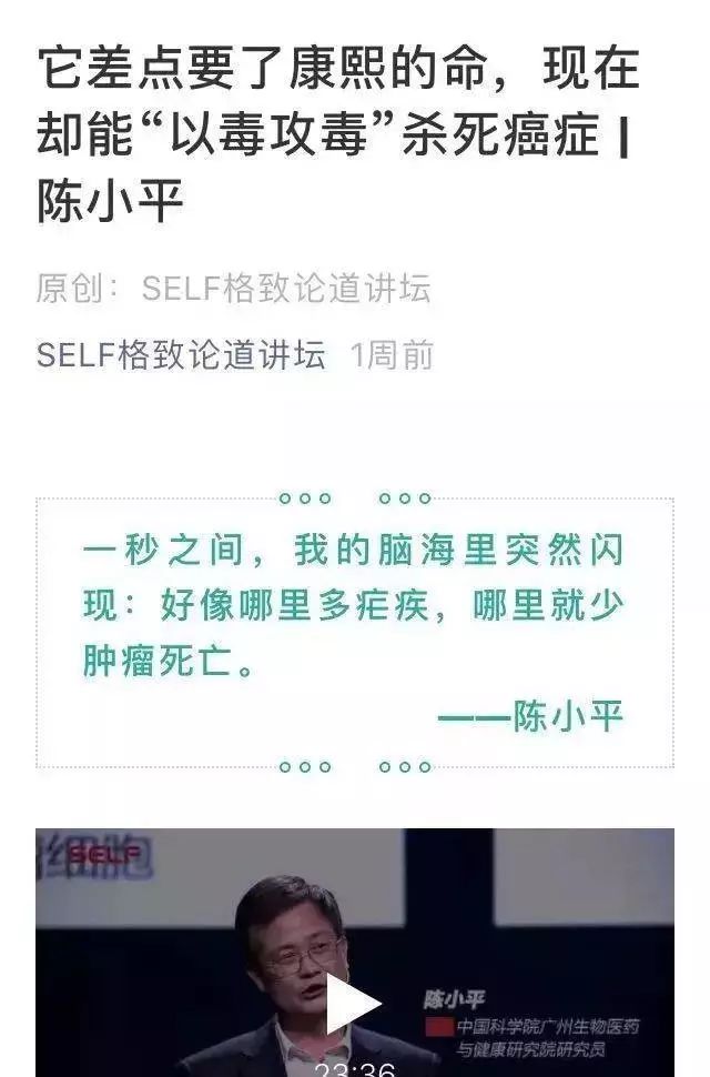说到这,你可能已经意识到了:科利医生在100多年前的尝试,和陈小平如今的尝试,其实从现象上看,是非常相似的。