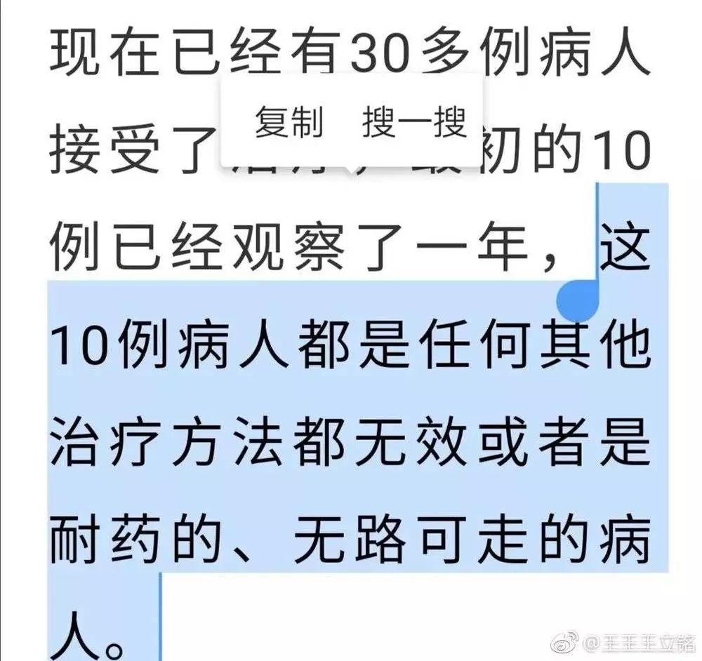 坚决反对将一项非常早期的、远未接近成功的研究加以包装,轻率的推向公众。就像我们已经看到的,这会极大地误导不具备太多医学知识的老百姓,给他们虚假的希望,甚至是不切实际的幻想。