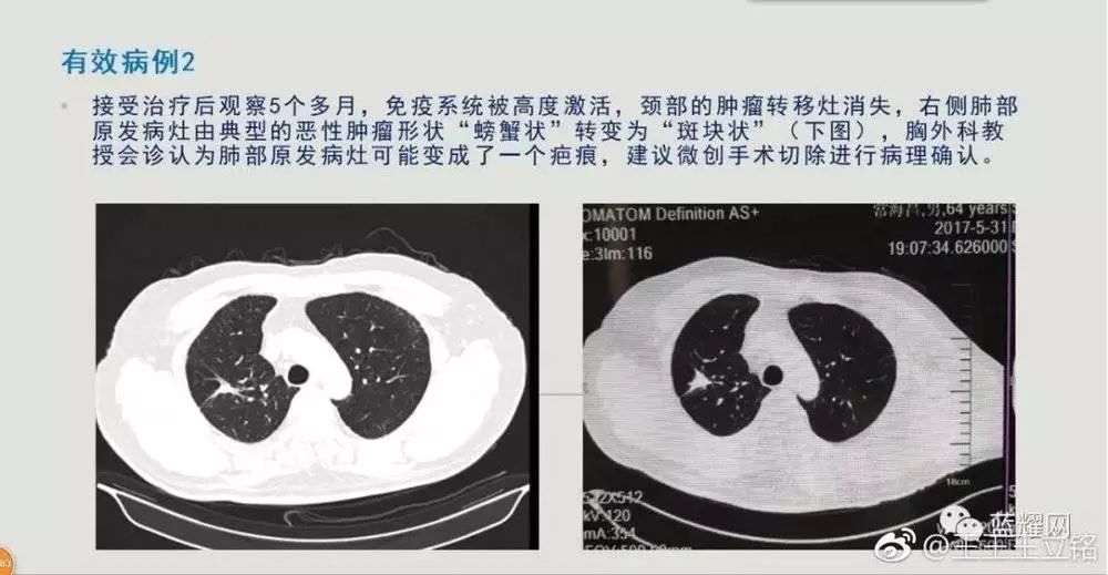 陈小平演讲中解释,这个患者用疟原虫治疗之后,肿瘤形状变化,因此用手术切除,无病生存至今。