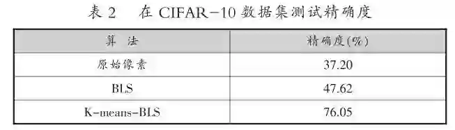 陈俊龙在其所发表的一篇文章中,对所提出涉及无监督的特征提取的模型进行测试后,将CIFAR-10数据及测试结果与原始BLS系统相比较。对于CIFAR-10数据集,通过K-means聚类算法对所提取的特征进行可视化,如图4所示。