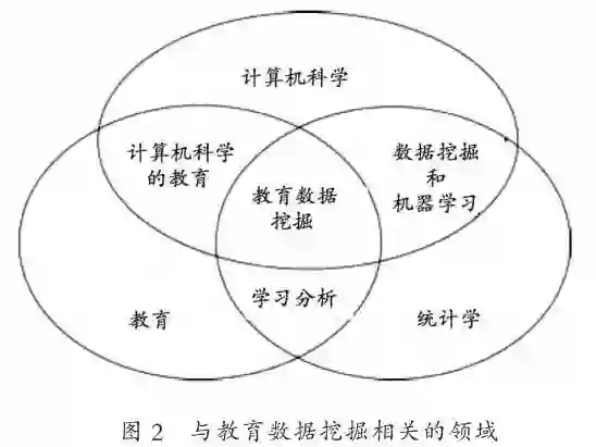 近年来,随着对大数据研究的不断深入,与教育数据挖掘相关的领域也在不断拓展。我们可以从与教育数据挖掘相关学科领域的宏观结构图(见图2)看到,目前,教育数据挖掘的理论和方法支持,主要包括数据挖掘、机器学习和数学统计。[13]