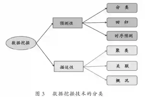 大量机器学习中的数据挖掘技术,已经被成功应用于教育领域。这些数据挖掘技术,可以分为描述性和预测性两大类(如图3所示)。[17]描述性的数据挖掘任务是对目标数据集中数据的属性进行特征描述,主要包括聚类(Clustering)、关联(Association)和概括(Summarization);预测性的挖掘任务是对当前数据进行归纳以进行预测,主要有分类(Classification)、回归(Regression)和时序预测(Time-Series Prediction)。而宽度学习基于其内部算法和系统结构,它在教育应用中主要可以通过分类、回归、聚类和时序预测)等挖掘技术手段,作用于教育大数据。