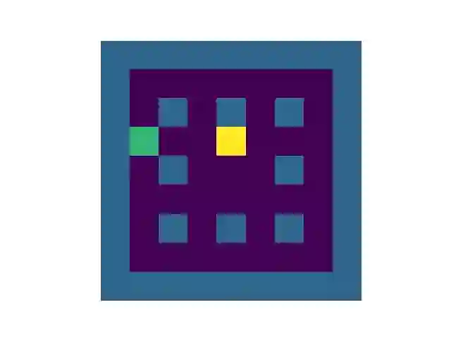 图2:迷宫探索任务。智能体( 黄色方块 )需要尽可能多的找到奖励位置( 绿色方块 )来获得相应的奖励( 智能体在每次发现奖励后将被随机传送到其它地点 )。在第 1 个循环中(左),智能体的行为本质上是随机的。经过 300,000次迭代后(右),智能体已经记住了奖励地点并直接导向它。