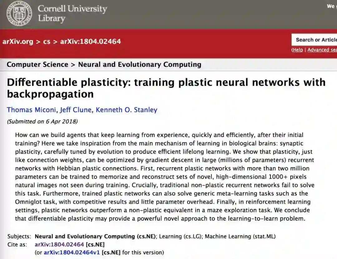 作者:Thomas Miconi, Jeff Clune and Kenneth O. Stanley