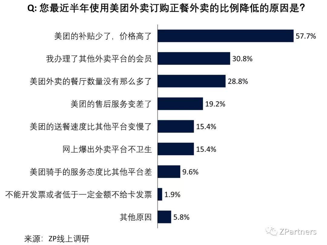 结果是,仅有少量的美团用户在近半年流失,流失的原因固然主要是价格。而由于价格减少使用的人仅仅占不到10%,这可能就是价格能够撬动比例的上限。