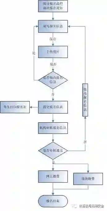 考生通过中国计算机技术职业资格网上的网上报名专栏或各省的人事考试网填报注册信息,进入报名系统后,签订诚信考试承诺书、正确填写报名信息、上传本人照片并提交至考试机构审核,审核通过后可在网上缴费或在指定地点缴费,完成报名。考生可在规定时间内自行打印报名表与准考证。凭准考证、身份证明在指定的时间、地点参加考试。