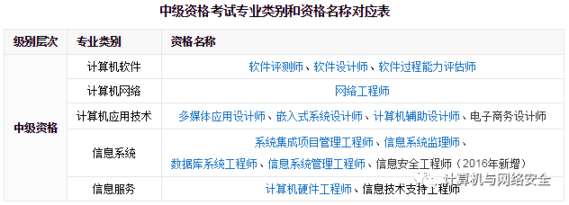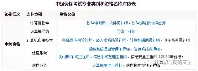 计算机资格考试划分为计算机软件、计算机网络、计算机应用技术、信息系统和信息服务共 5 个专业类别,并在各专业类别中分设了高、中、初级专业资格考试。人社部和工信部将根据发展需要适时调整专业类别和资格名称。