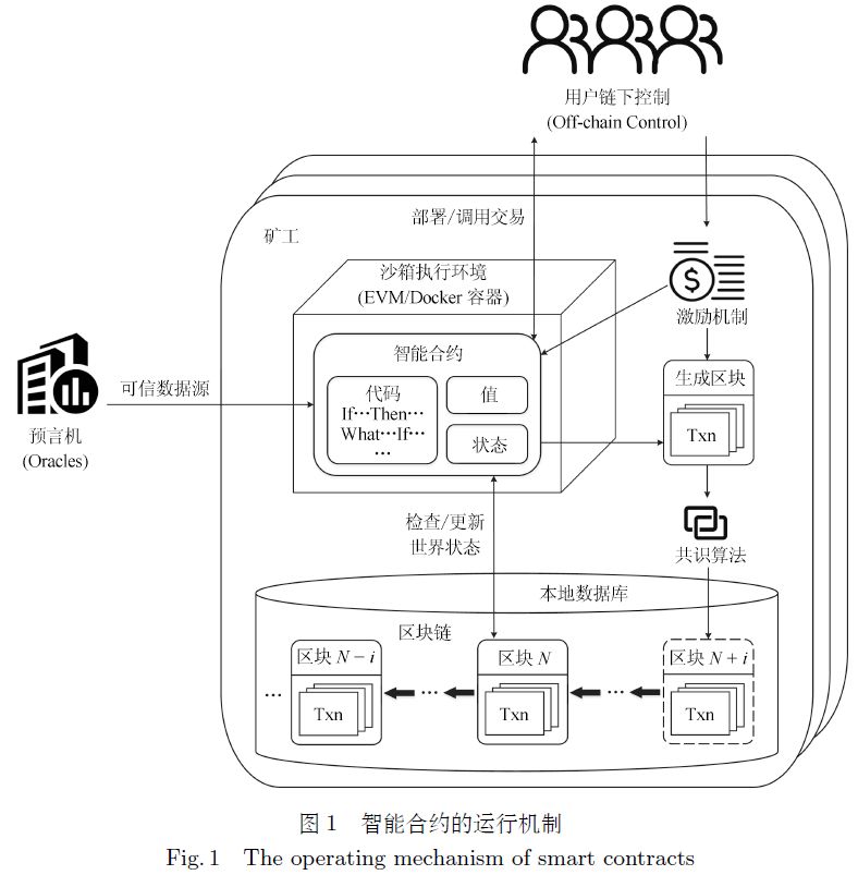 3) 预言机(Oracles):为保证区块链网络的安全, 智能合约一般运行在隔离的沙箱执行环境中(如以太坊的EVM及超级账本的Docker容器等), 除交易的附加数据外, 预言机可提供可信外部数据源供合约查询外部世界的世界状态或触发合约执行.同时, 为保持分布式节点的合约执行结果一致, 智能合约也通过查询预言机实现随机性.