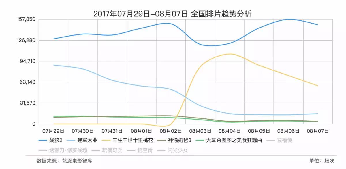 今年的暑期档在走过不温不火的7月之后似乎突然迎来了高潮,《战狼2》自7月28日上映之后便势不可挡地拿下了30亿票房,距打破《美人鱼》33.9亿元的票房纪录近在咫尺。与此同时,影版《三生三世十里桃花》凭借其IP和当红流量小生小花的号召力也不断成为网络热门话题,5天4.4亿的票房并不算难看。