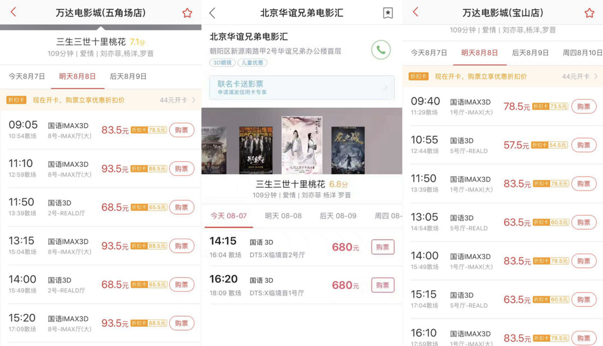 此外,还有故意将《三生三世》的大量排片排成昂贵的imax场。