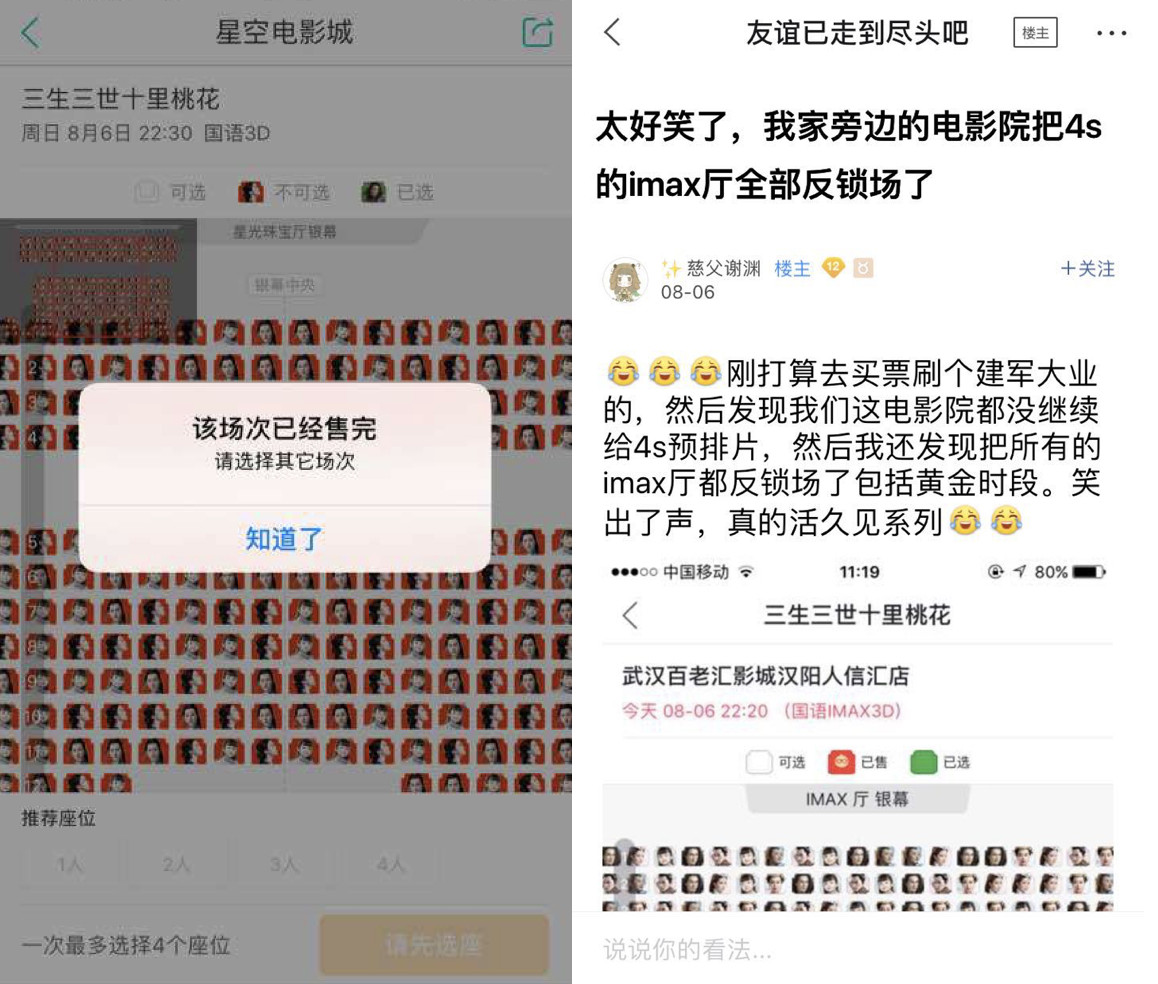 但是到了《三生三世十里桃花》这里,就演变成了院线与粉丝的矛盾,针对三生粉的“锁场”行为,院线开启了“反锁场”。