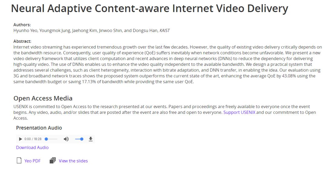 OSDI上的一篇文章“神经自适应型内容感知互联网视频传输”激发了我对这一领域的兴趣。