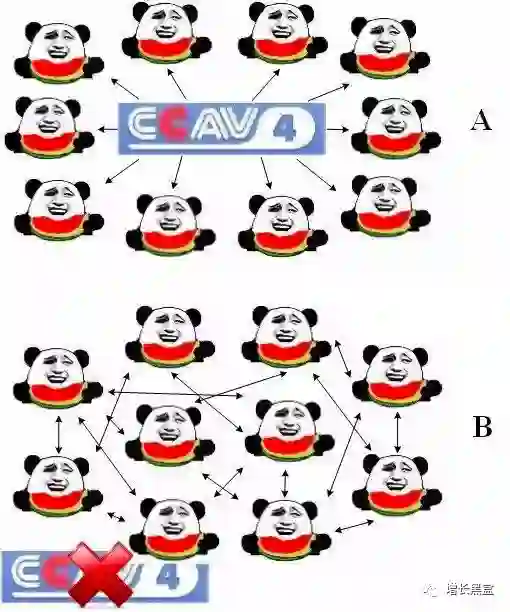 他再次论证了:线上流量正在从中心化媒体转向熟人网络社交 - 在社交时代,把广告投给普通用户,才是四两拨千斤的营销王道。现在各种裂变、拼团、分销、答题PK等营销方式的兴起,恰恰是对趋势最好的证明。文章中的一幅图,形象的表述了移动互联网时代,传播路径的变化(由A到B)。