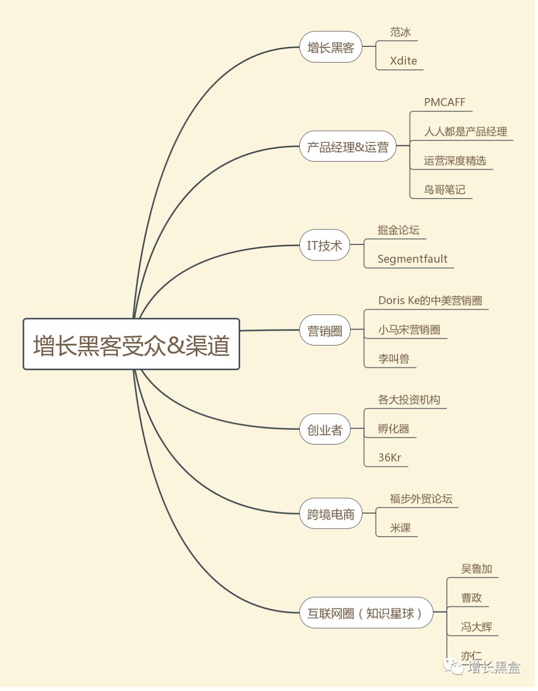 增长黑客领域在国内的KOL不多,熟悉的只有范冰和Xdite。更大的方向是找到潜在的增长黑客,如果你还记得刚才的公式:增长黑客=产品+运营+技术+营销,方向会清晰很多。除此之外,创业者也是一大受众,因为创业公司一旦不增长就会死掉,所以创业者比打工者更渴望增长。还有个方向就是国内的互联网流量圈以及出海的跨境电商圈子,大概率也是增长黑客出没的地方。