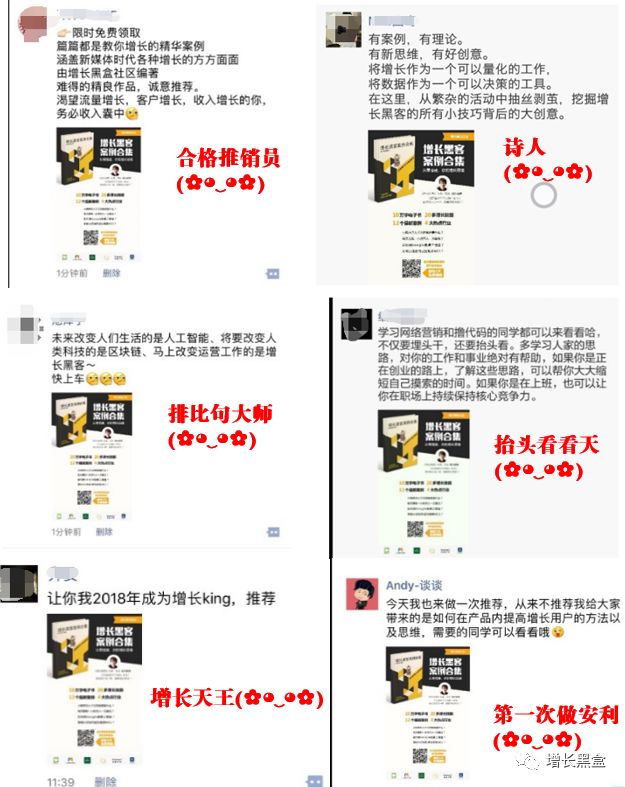 在执行这个病毒营销(viral loop)一段时间后,我们大概在表单里收到了300个转发截图。给大家展示一下用户们自发的推荐语,比我们自己写的还要真诚......再努力一下感觉我们就可以成为微商总代,喜提spacex火箭,送增长黑客大家庭的成员上天啦。