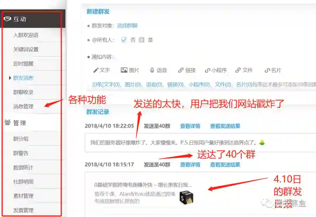 建群宝和小u助手是一家母公司的产品,专注于社群运营,毛估估在这个细分市场里份额第一应该没毛病,文章结尾处会设置工具讨论群,有需求的可以进入。