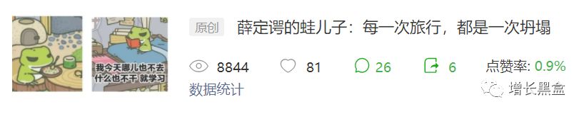 说到接触增长黑客,我们也是看了范冰的第一本书《增长黑客》才知道了这个概念,自然而然的我们也加入了范冰的读者微信群。当我们的文章写好后,我们就第一时间发到了范冰的读者群,很快便获得了一些读者,同时也获得了范冰大大的称赞。第一篇文章发出来的时候连粉丝都没有就有上千的阅读,这就是通过KOL找到垂直渠道的一种冷启动方式。