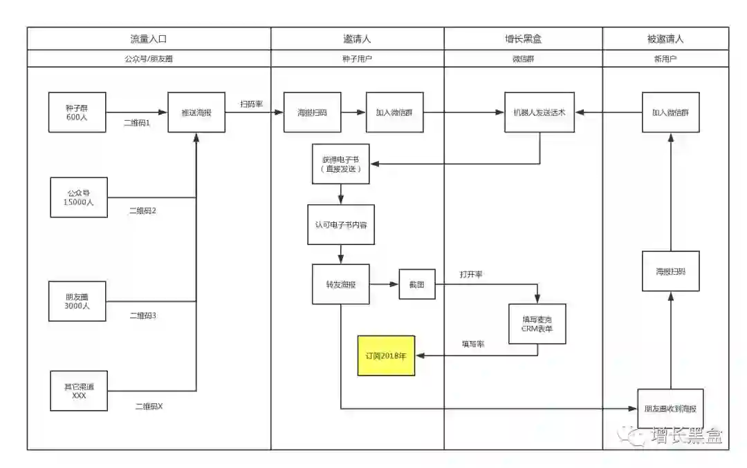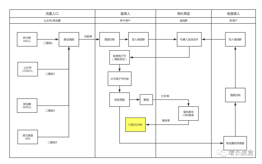 简单的介绍一下:《增长黑盒》是Alan&Yolo折腾了大半年的一个公众号,他们俩2018年年初才下定决心全职做这个媒体,专注研究“增长黑客”。鉴于《增长黑盒》是一个专注研究“增长”的媒体,除了写别人的案例,他们自己做到增长才有说服力。所以,他们在一季度给自己定下了不花任何预算,跑通增长黑客转化漏斗的“增长真人秀”任务。